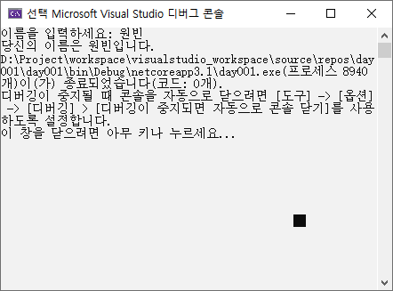 Console.Write("당신의 이름은 "+name+"입니다.");