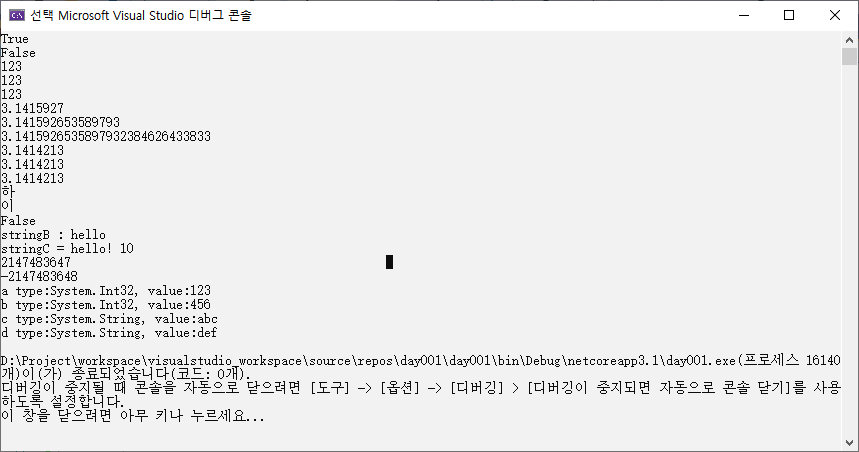 | [c#] 003-형식지정자, 변수 선언과 자료형(2) (0) | 2020.01.20 |