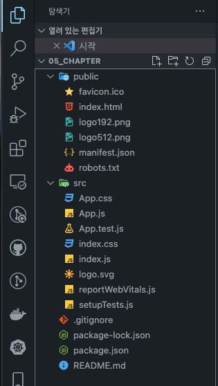 일단, 위와 같이 npx create-react-app 을 이용하여 리액트 보일러 플레이트를 생성한다.