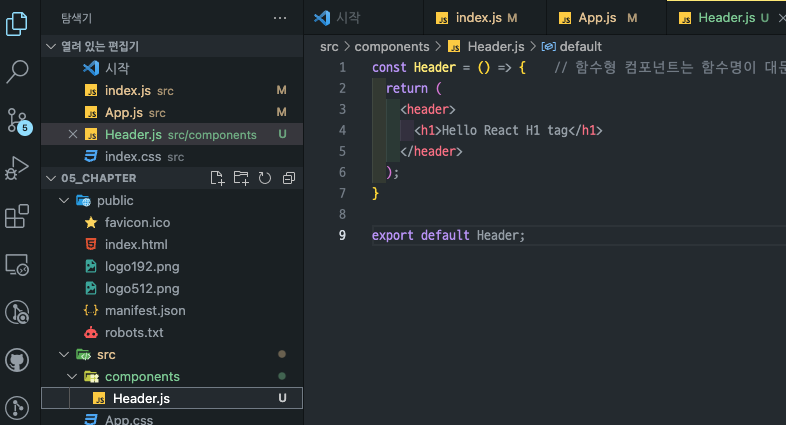 const Header = () => { // 함수형 컴포넌트는 함수명이 대문자로 시작한다.