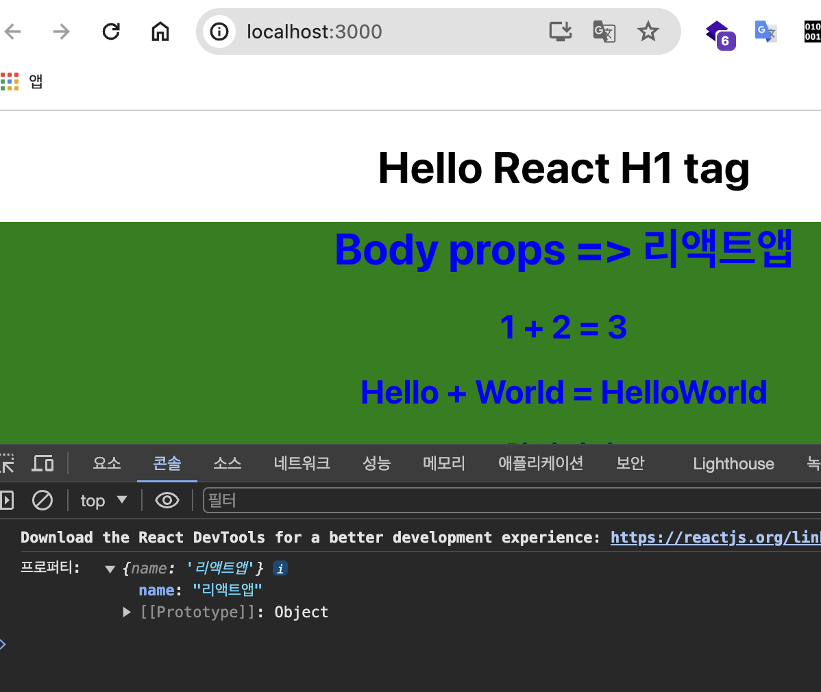 App 컴포넌트에서 Body 컴포넌트로 Props를 전달할 값을 객체 BodyPorps로 생성하고, 이를 스프레드 연산자를 통하여 Body 속성으로 Props를 전달하였다.
