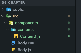 src 디렉토리 밑에 contents 디렉토리를 생성하고 Content1.js를 만들자