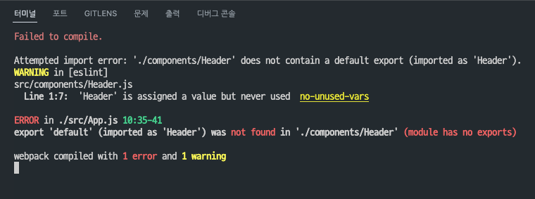 만약 export 를 해주지 않으면 컴파일 에러가 발생합니다.
