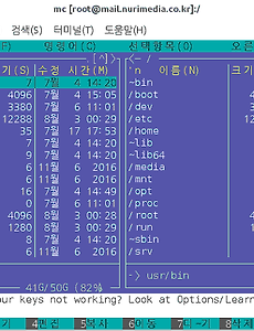 MC1 [Linux] CentOS mc 명령어 사용하기 mc는 리눅스에서 ls 명령어 등을 좀 더 쉽게 사용하여디렉토리 접근, 실행을 편리하게 사용할 수 있는 유틸리티 입니다. 12# mcbash: mc: 명령을 찾을 수 없습니다...cs 위처럼 mc 명령어로 실행할 수 있는데..처음 리눅스를 설치하였다면 설치가 되어있지 않으므로 알 수 없는 명령어로 나타나는데요. 1yum -y install mccs 위처럼 명령어를 내려주면 설치가 완료됩니다.다시 mc명령어를 실행시켜 줍니다. 1# mccs 왼쪽과 오른쪽을 분리해서 사용할 수 있는데...위와 같은 UI로 되어있는 것은 서로 파일의 편집(복사/이동) 을 쉽게 할 수 있도록 하기 위해서이다. 왼/오른 쪽간의 이동은 키를 이용하여 이동할 수 있다. 추가적으로 를 이용하여 mc 메뉴를 열 수가 있다. 해당 메뉴에.. 2017. 8. 3. 이전 1 다음